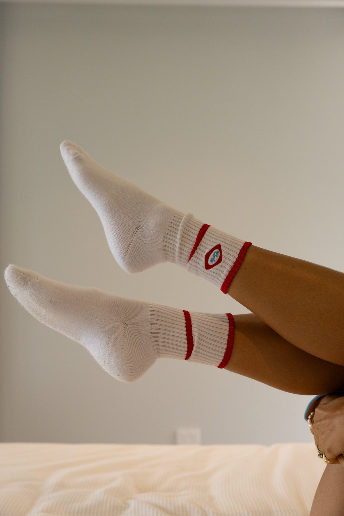 Our GRLS Socks come in a two-pack featuring one crisp white pair with red detailing and one classic black pair with contrast trim, designed to rotate with your wardrobe and elevate even your most off-duty looks.