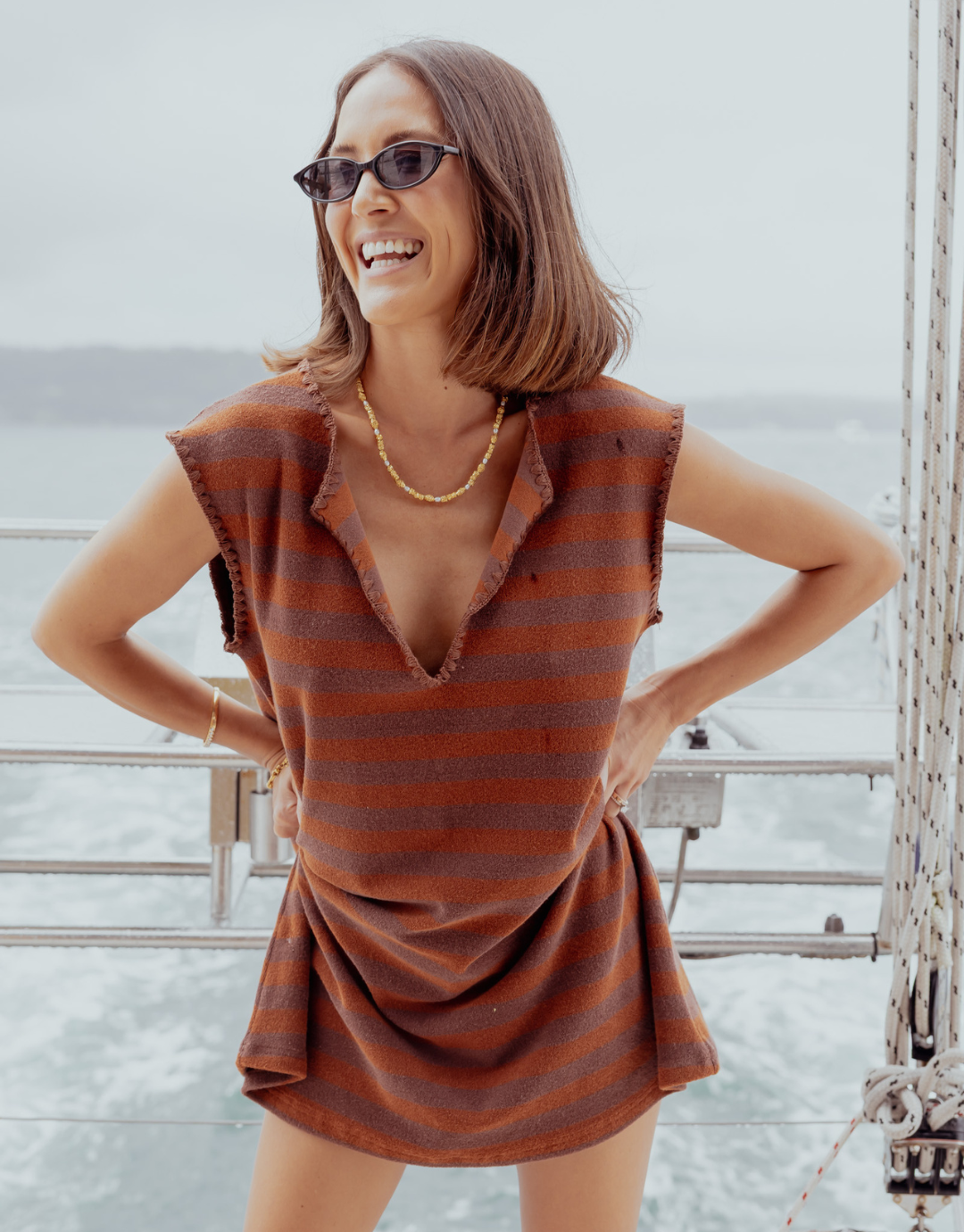 Meet your new off-duty essential. The Suki Dress is a relaxed mini style crafted from ultra-soft terry towelling, designed to take you from beach to brunch with ease. Featuring a flattering V-neckline, capped sleeves and Finished with contrast stitch detailing around the neckline and sleeves, this piece elevates a classic towelling dress into something truly special.